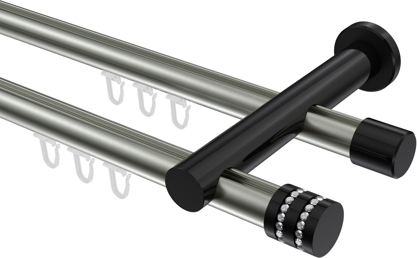 Informationen zu Innenlauf Gardinenstange Aluminium / Metall 20 mm Ø 2-läufig PLATON - Estana Edelstahl-Optik / Schwarz: