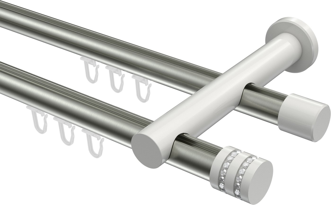 Informationen zu Innenlauf Gardinenstange Aluminium / Metall 20 mm Ø 2-läufig PLATON - Estana Edelstahl-Optik / Weiß: