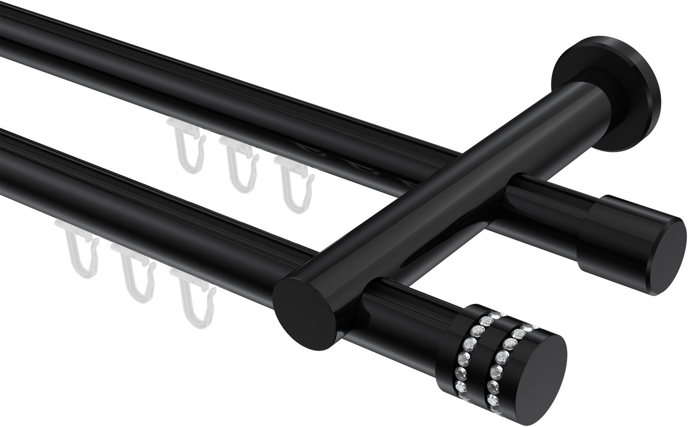 Gardinenstangen mit Innenlauf aus Aluminium / Metall in 20 mm Ø, 2-läufig, Modell PLATON - Estana Schwarz