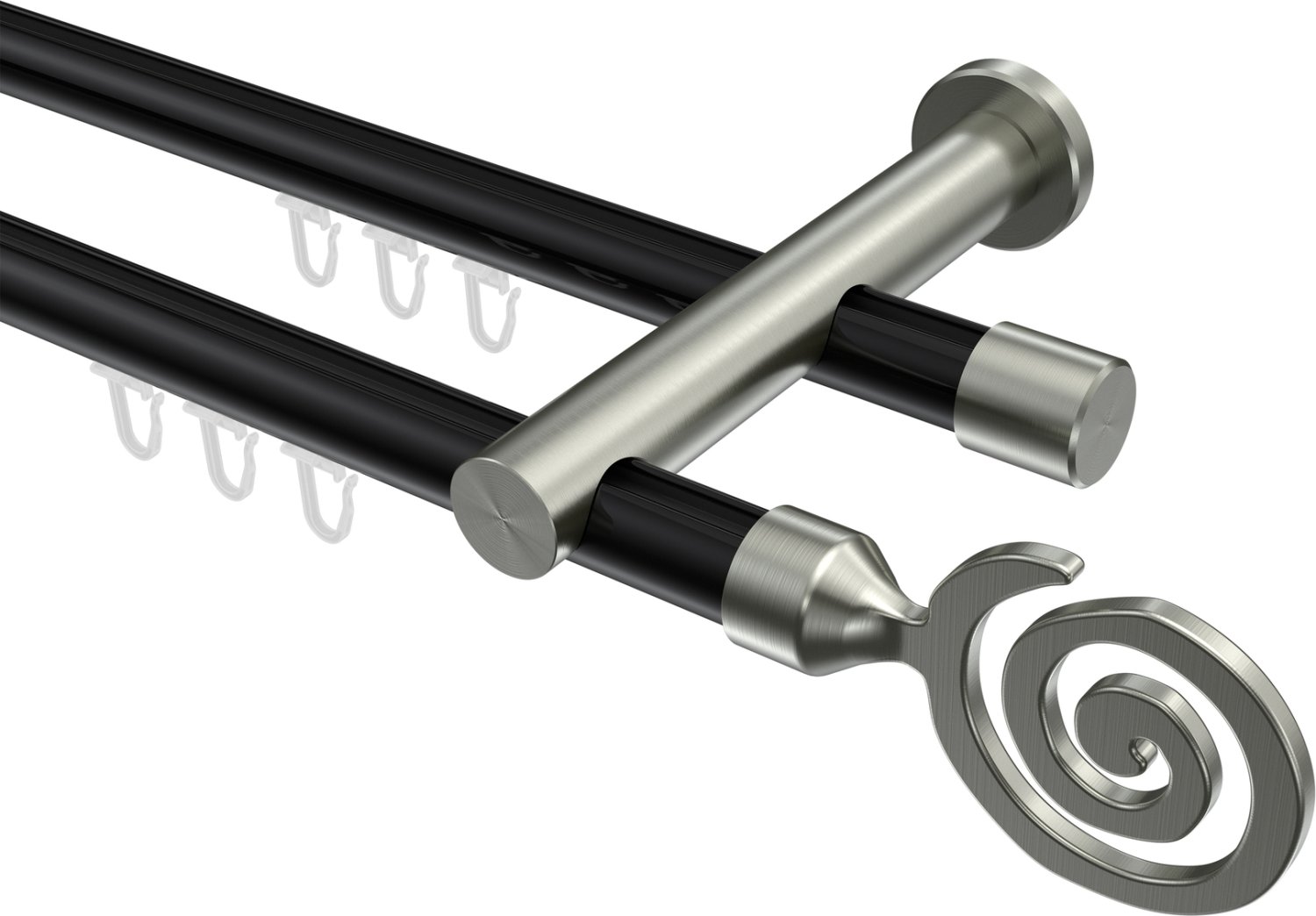 Gardinenstangen mit Innenlauf aus Aluminium / Metall in 20 mm Ø, 2-läufig, Modell PLATON - Galaxa Schwarz / Edelstahl-Optik