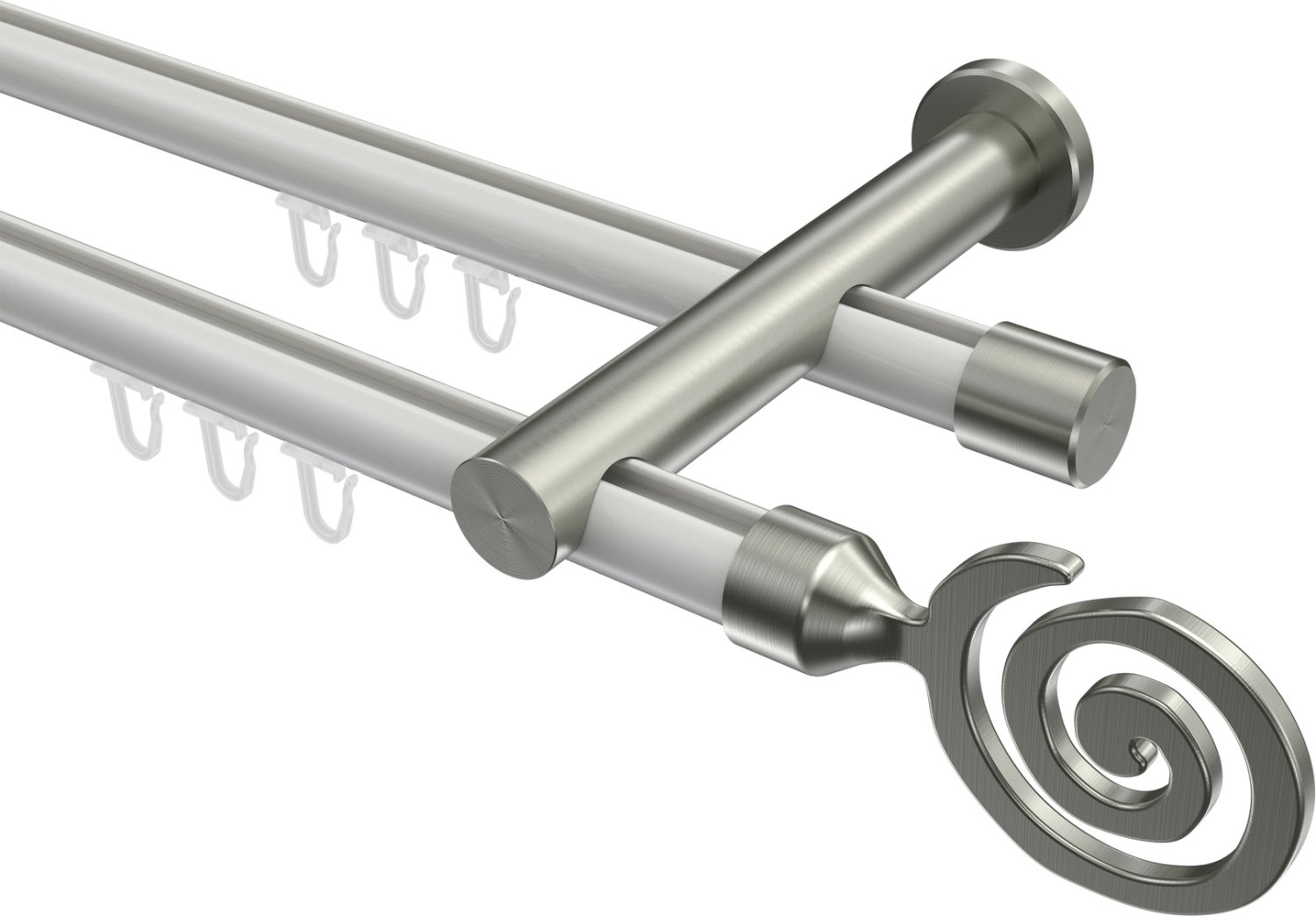 Gardinenstangen mit Innenlauf aus Aluminium / Metall in 20 mm Ø, 2-läufig, Modell PLATON - Galaxa Weiß / Edelstahl-Optik
