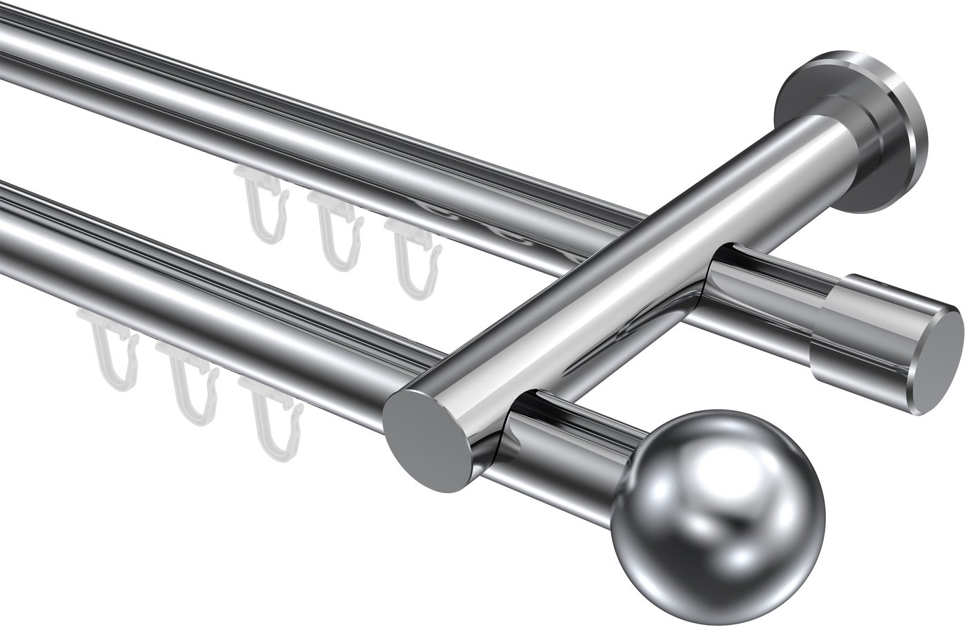 Gardinenstangen mit Innenlauf aus Aluminium / Metall in 20 mm Ø, 2-läufig, Modell PLATON - Luino Chrom