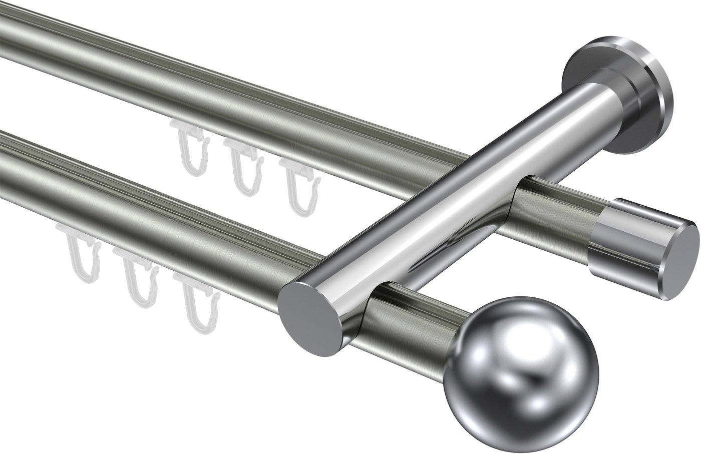 Gardinenstangen mit Innenlauf aus Aluminium / Metall in 20 mm Ø, 2-läufig, Modell PLATON - Luino Edelstahl-Optik / Chrom
