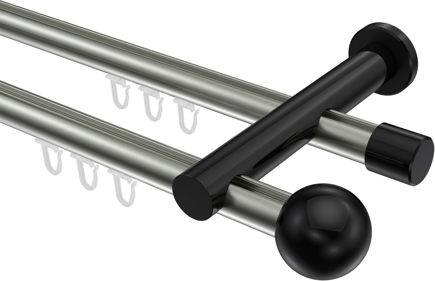 Gardinenstangen mit Innenlauf aus Aluminium / Metall in 20 mm Ø, 2-läufig, Modell PLATON - Luino Edelstahl-Optik / Schwarz