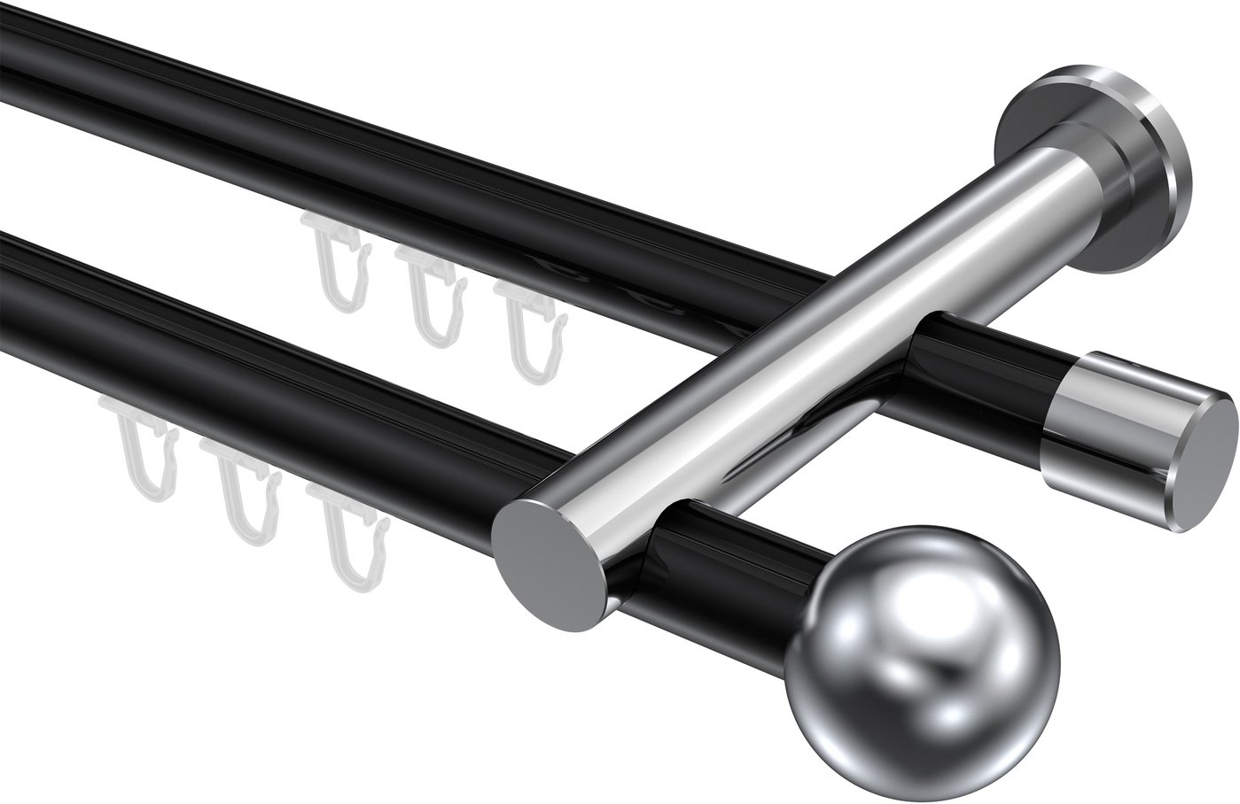 Informationen zu Innenlauf Gardinenstange Aluminium / Metall 20 mm Ø 2-läufig PLATON - Luino Schwarz / Chrom: