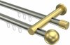 Gardinenstangen mit Innenlauf aus Aluminium / Metall in 20 mm Ø, 2-läufig, Modell PLATON - Luino Schwarz / Edelstahl-Optik