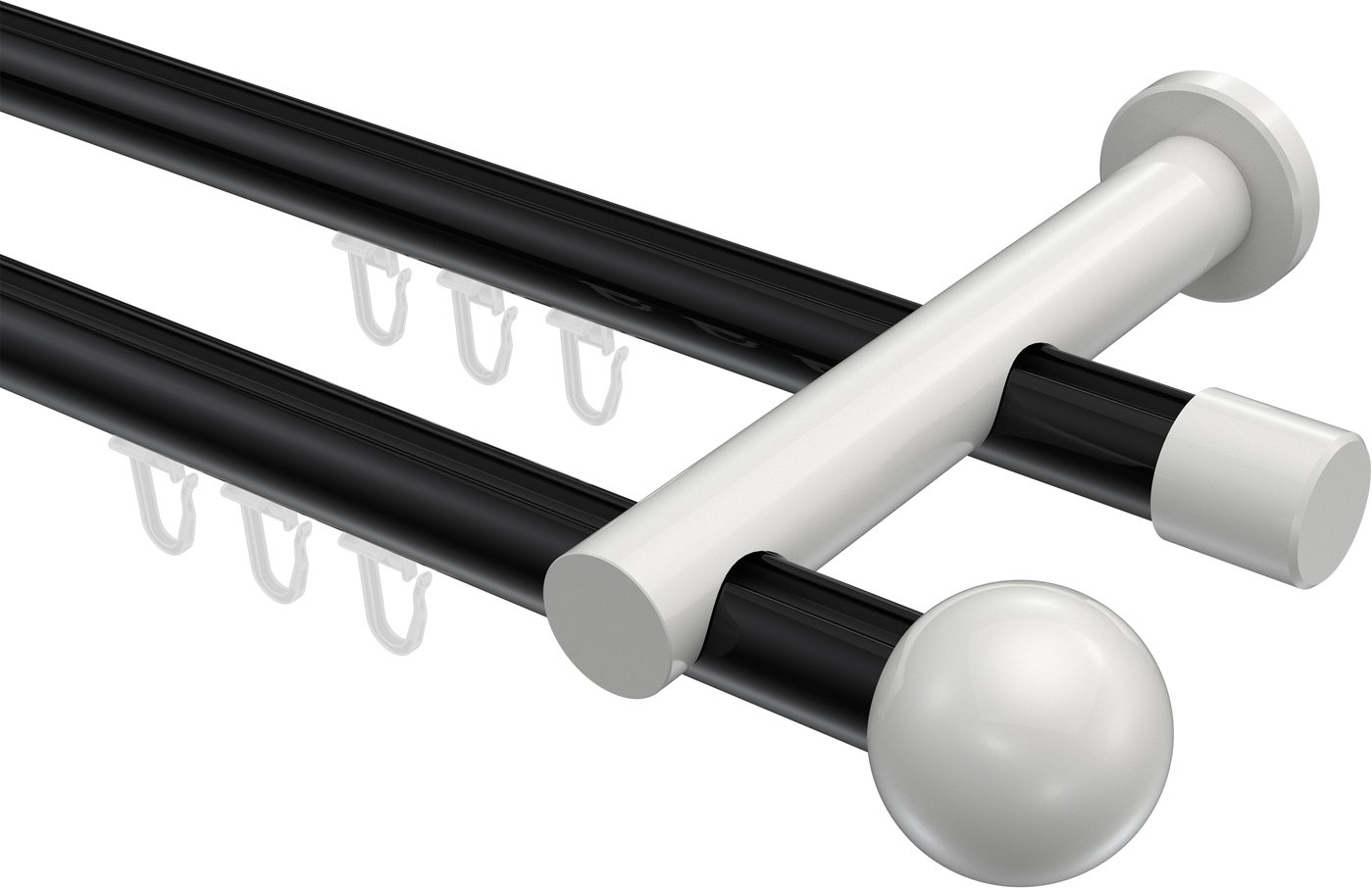 Informationen zu Innenlauf Gardinenstange Aluminium / Metall 20 mm Ø 2-läufig PLATON - Luino Schwarz / Weiß: