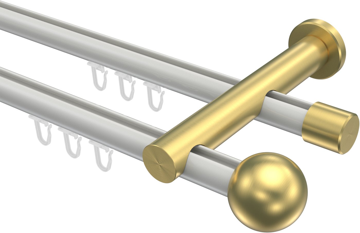 Gardinenstangen mit Innenlauf aus Aluminium / Metall in 20 mm Ø, 2-läufig, Modell PLATON - Luino Weiß / Messing-Optik