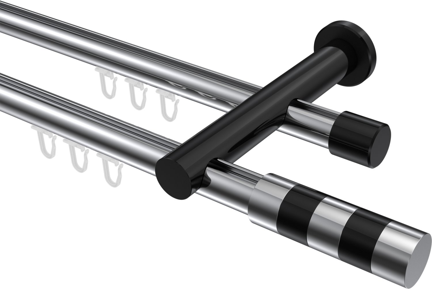 Informationen zu Innenlauf Gardinenstange Aluminium / Metall 20 mm Ø 2-läufig PLATON - Mavell Chrom / Schwarz: