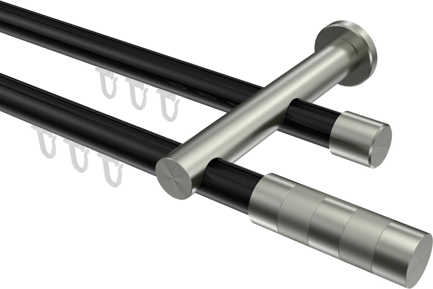 Gardinenstangen mit Innenlauf aus Aluminium / Metall in 20 mm Ø, 2-läufig, Modell PLATON - Mavell Schwarz / Edelstahl-Optik
