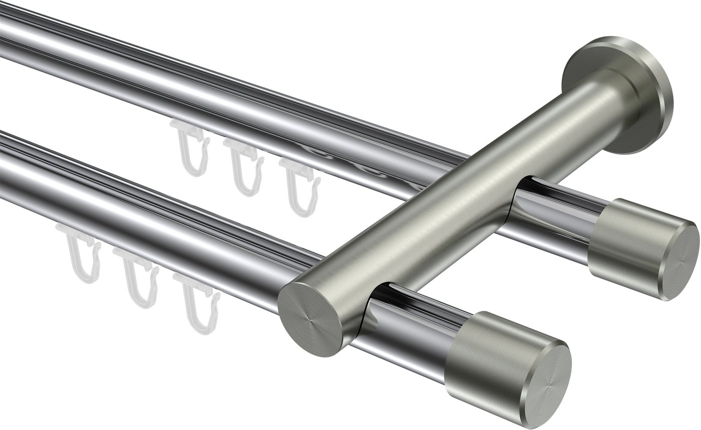 Gardinenstangen mit Innenlauf aus Aluminium / Metall in 20 mm Ø, 2-läufig, Modell PLATON - Santo Chrom / Edelstahl-Optik