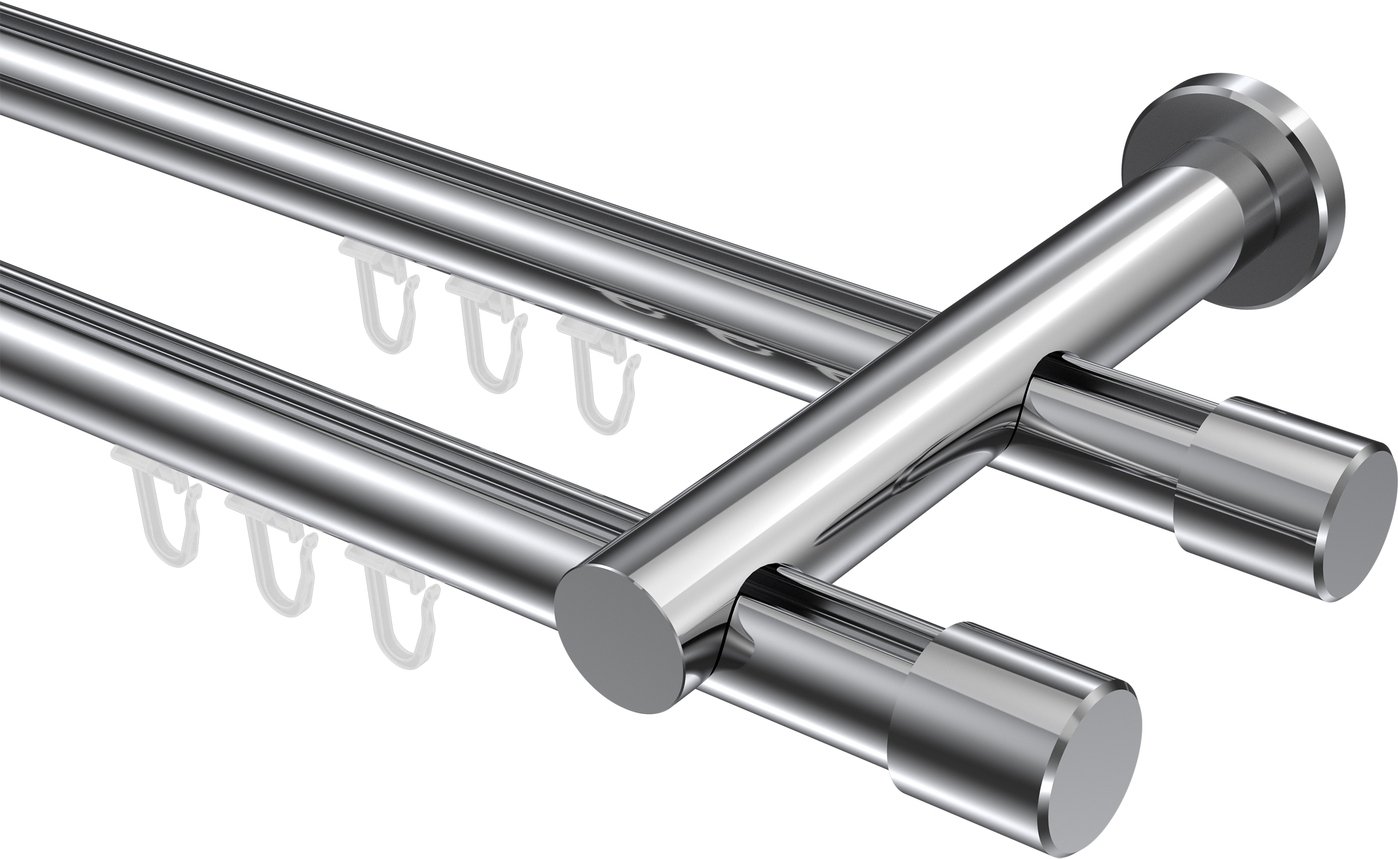 Gardinenstangen mit Innenlauf aus Aluminium / Metall in 20 mm Ø, 2-läufig, Modell PLATON - Santo Chrom