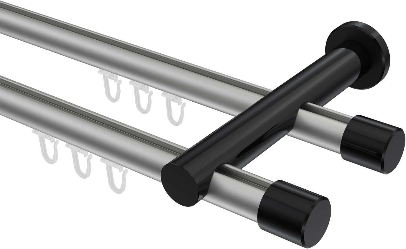 Informationen zu Innenlauf Gardinenstange Aluminium / Metall 20 mm Ø 2-läufig PLATON - Santo Silbergrau / Schwarz: