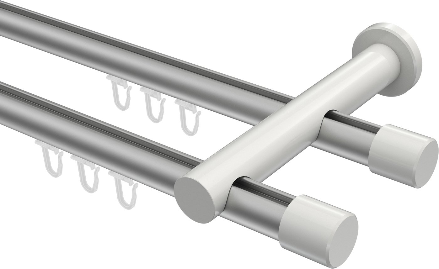 Informationen zu Innenlauf Gardinenstange Aluminium / Metall 20 mm Ø 2-läufig PLATON - Santo Silbergrau / Weiß: