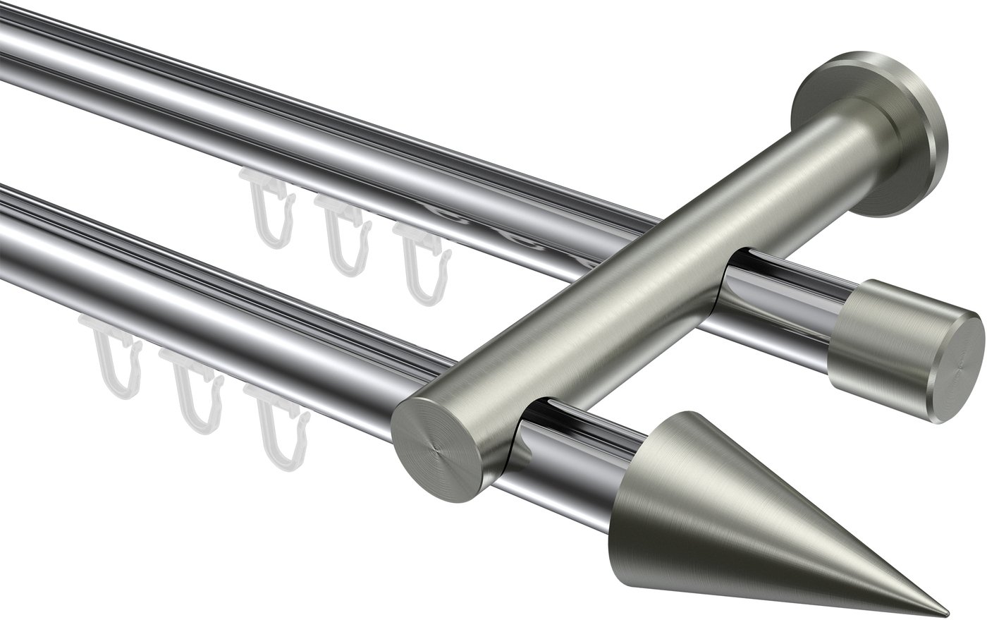 Gardinenstangen mit Innenlauf aus Aluminium / Metall in 20 mm Ø, 2-läufig, Modell PLATON - Savio Chrom / Edelstahl-Optik