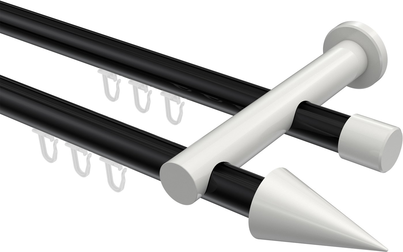 Gardinenstangen mit Innenlauf aus Aluminium / Metall in 20 mm Ø, 2-läufig, Modell PLATON - Savio Schwarz / Weiß