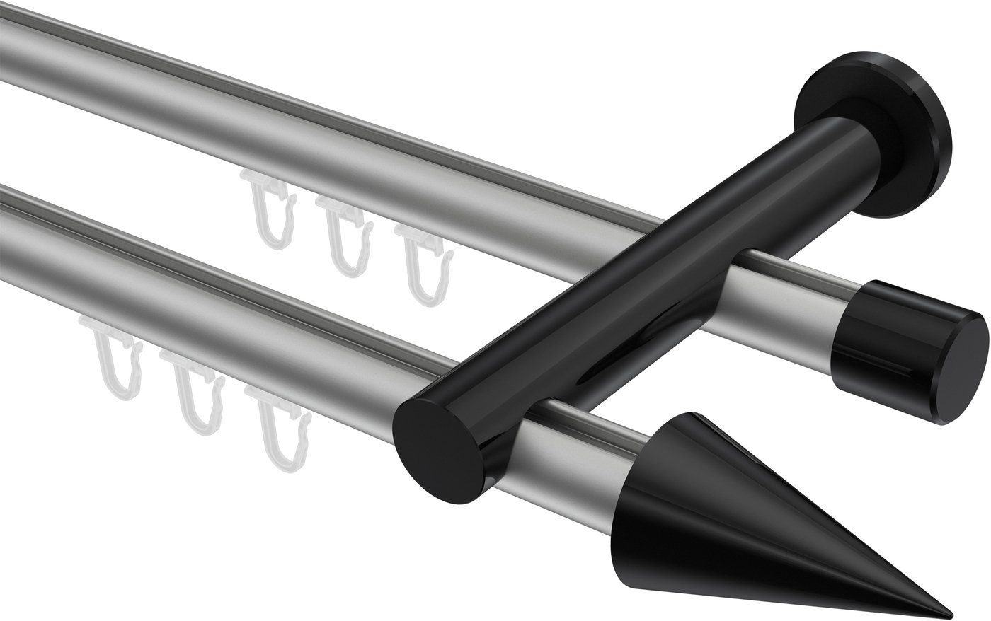 Gardinenstangen mit Innenlauf aus Aluminium / Metall in 20 mm Ø, 2-läufig, Modell PLATON - Savio Silbergrau / Schwarz