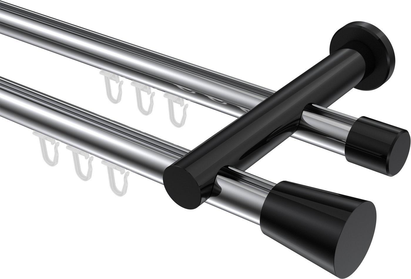 Gardinenstangen mit Innenlauf aus Aluminium / Metall in 20 mm Ø, 2-läufig, Modell PLATON - Sitra Chrom / Schwarz
