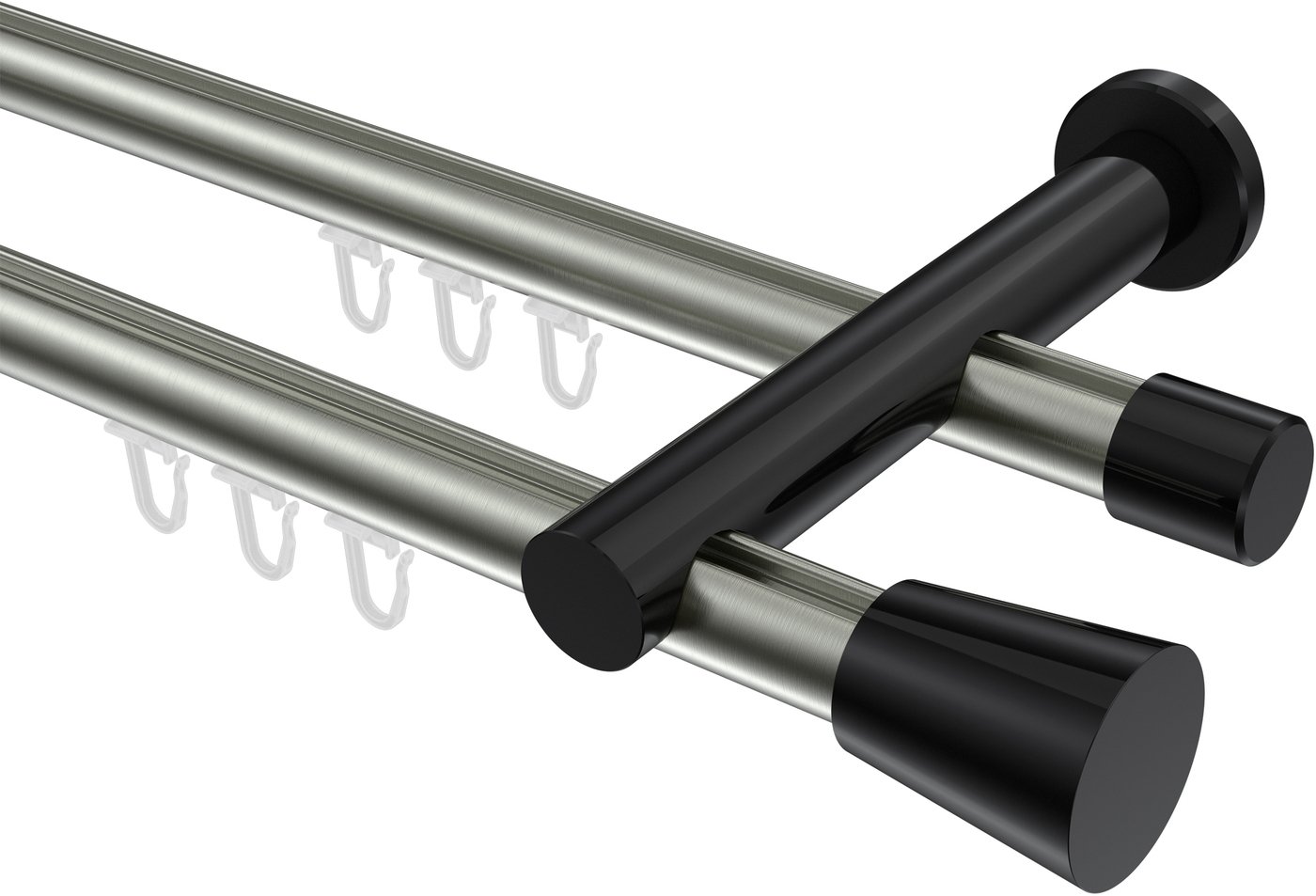 Informationen zu Innenlauf Gardinenstange Aluminium / Metall 20 mm Ø 2-läufig PLATON - Sitra Edelstahl-Optik / Schwarz: