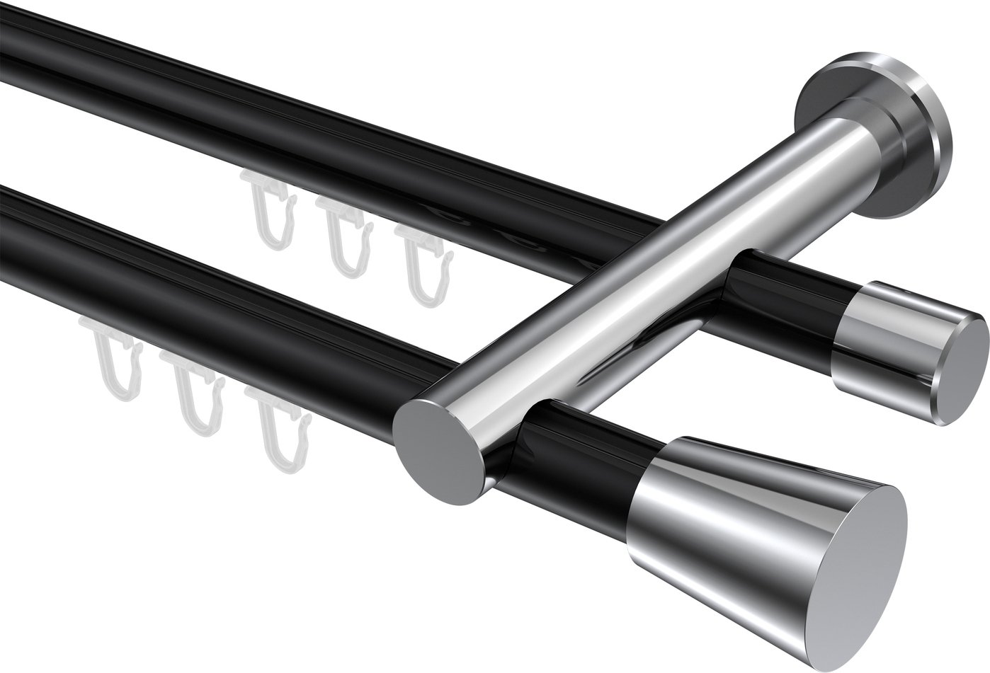 Informationen zu Innenlauf Gardinenstange Aluminium / Metall 20 mm Ø 2-läufig PLATON - Sitra Schwarz / Chrom: