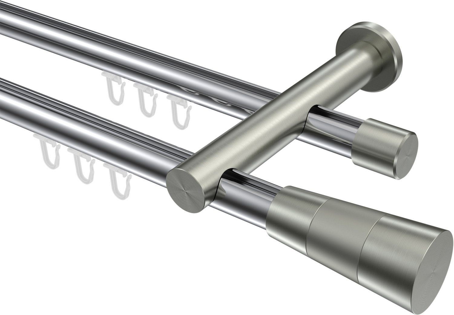 Gardinenstangen mit Innenlauf aus Aluminium / Metall in 20 mm Ø, 2-läufig, Modell PLATON - Tanara Chrom / Edelstahl-Optik