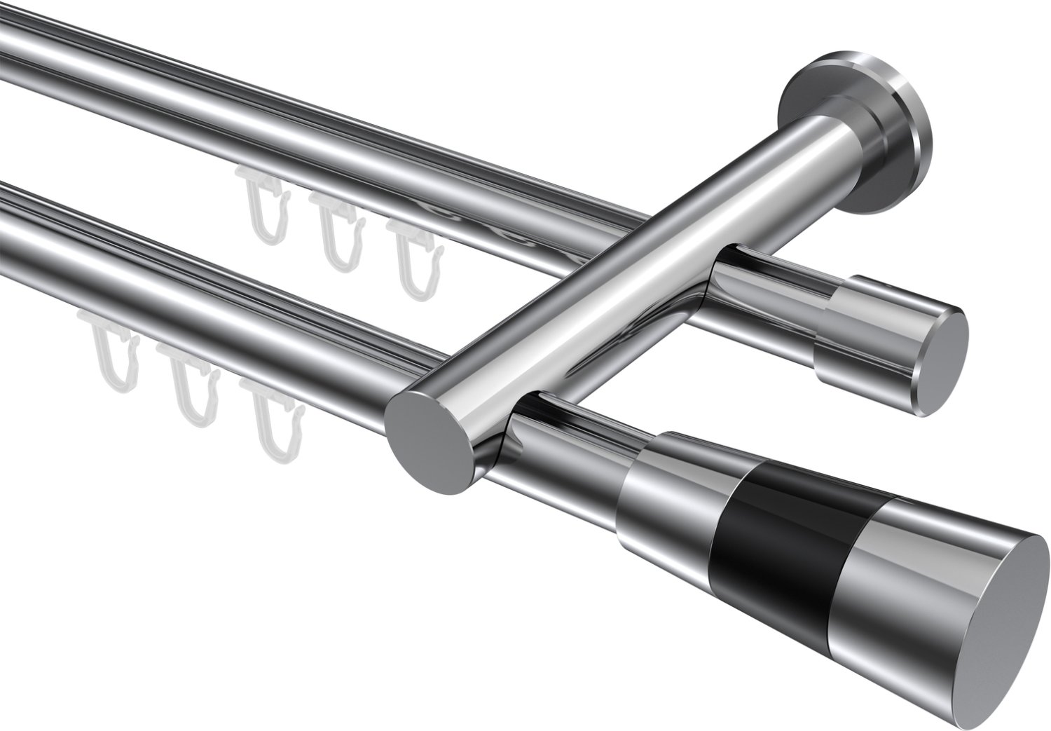 Gardinenstangen mit Innenlauf aus Aluminium / Metall in 20 mm Ø, 2-läufig, Modell PLATON - Tanara Chrom