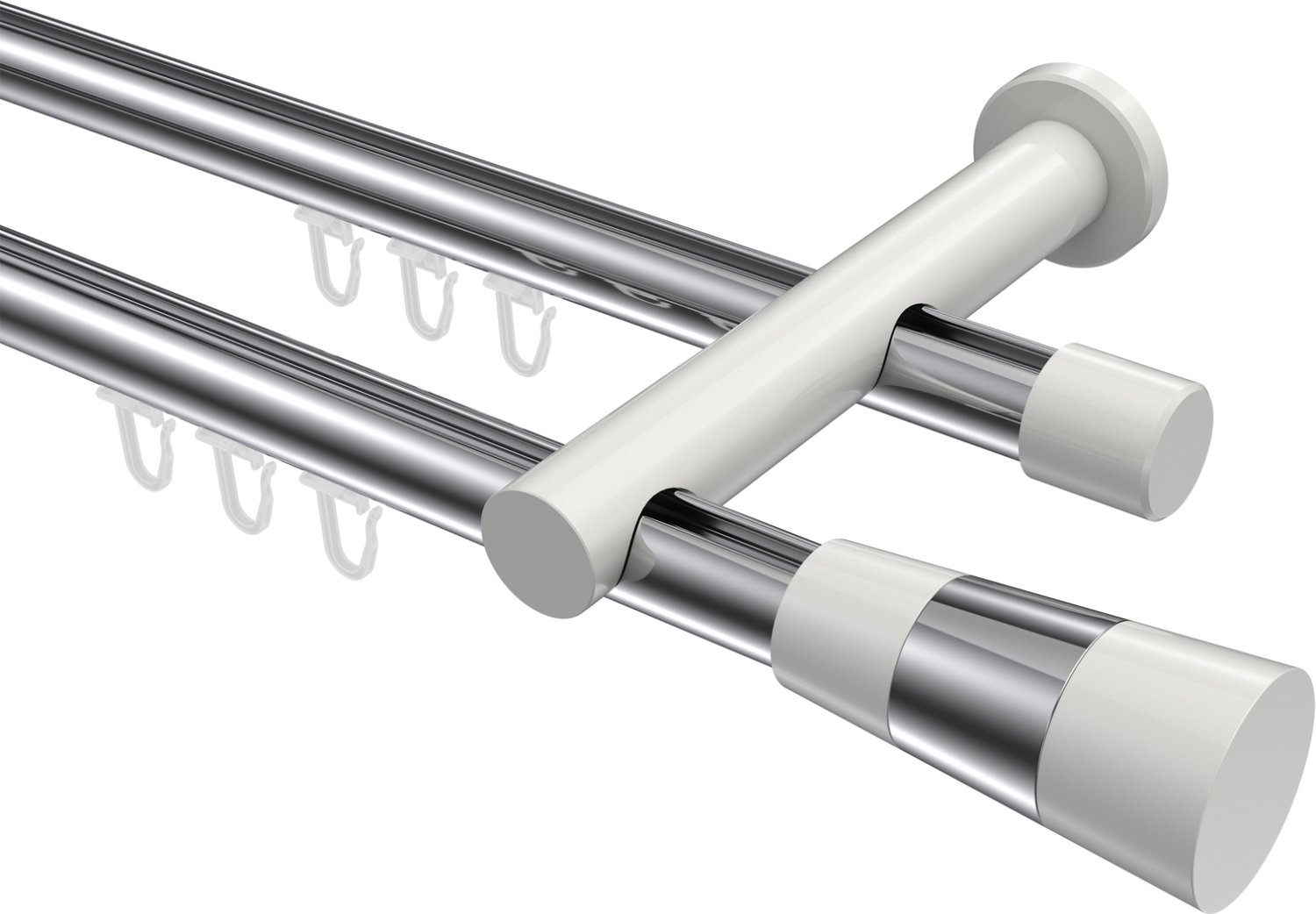 Gardinenstangen mit Innenlauf aus Aluminium / Metall in 20 mm Ø, 2-läufig, Modell PLATON - Tanara Chrom / Weiß