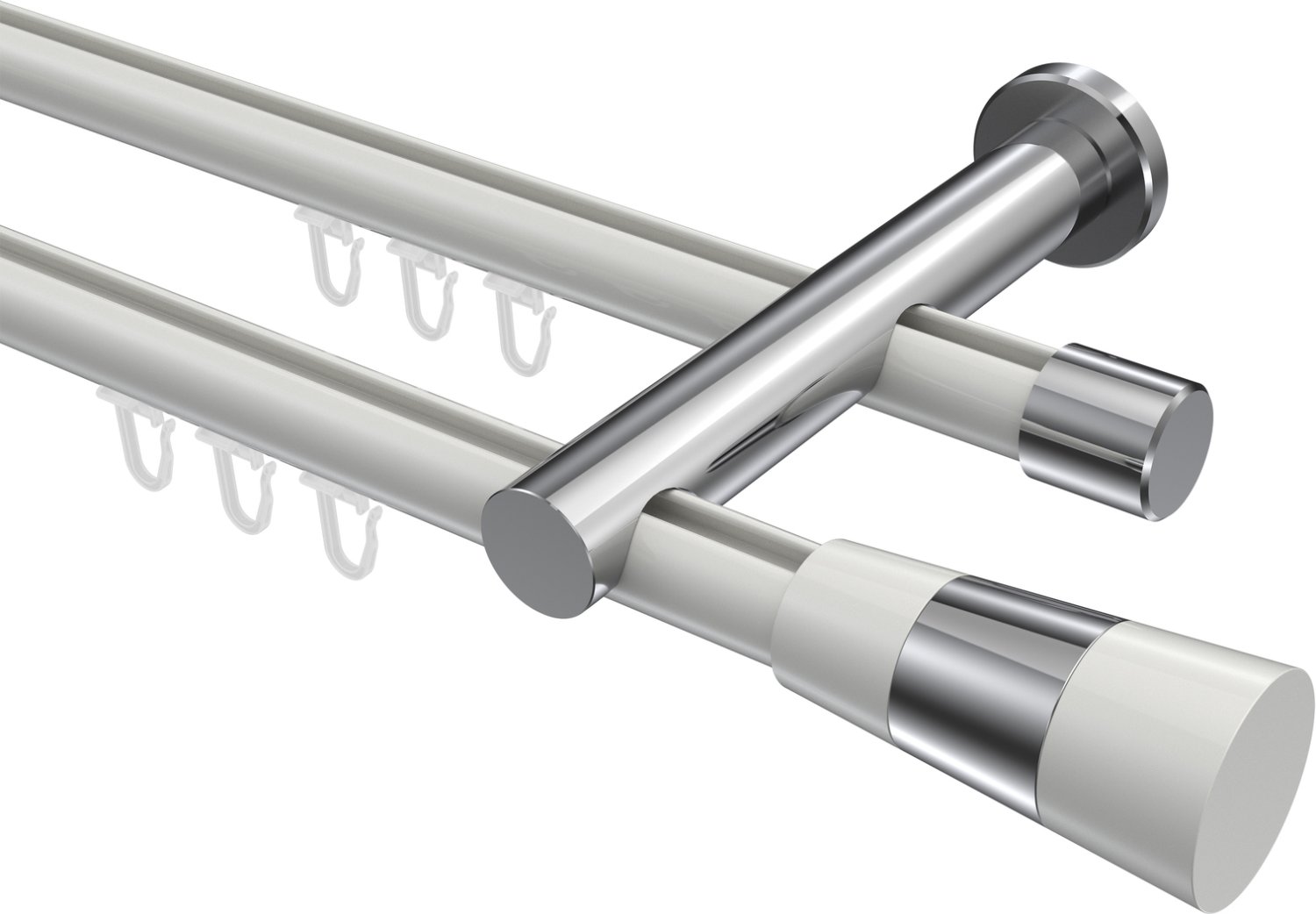 Gardinenstangen mit Innenlauf aus Aluminium / Metall in 20 mm Ø, 2-läufig, Modell PLATON - Tanara Weiß / Chrom