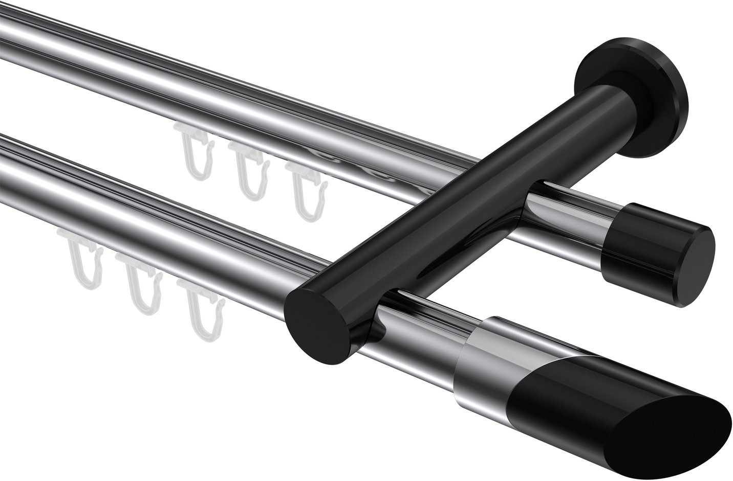 Informationen zu Innenlauf Gardinenstange Aluminium / Metall 20 mm Ø 2-läufig PLATON - Verano Chrom / Schwarz: