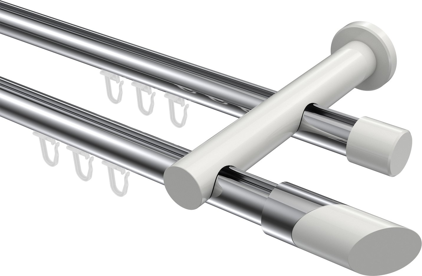 Gardinenstangen mit Innenlauf aus Aluminium / Metall in 20 mm Ø, 2-läufig, Modell PLATON - Verano Chrom / Weiß