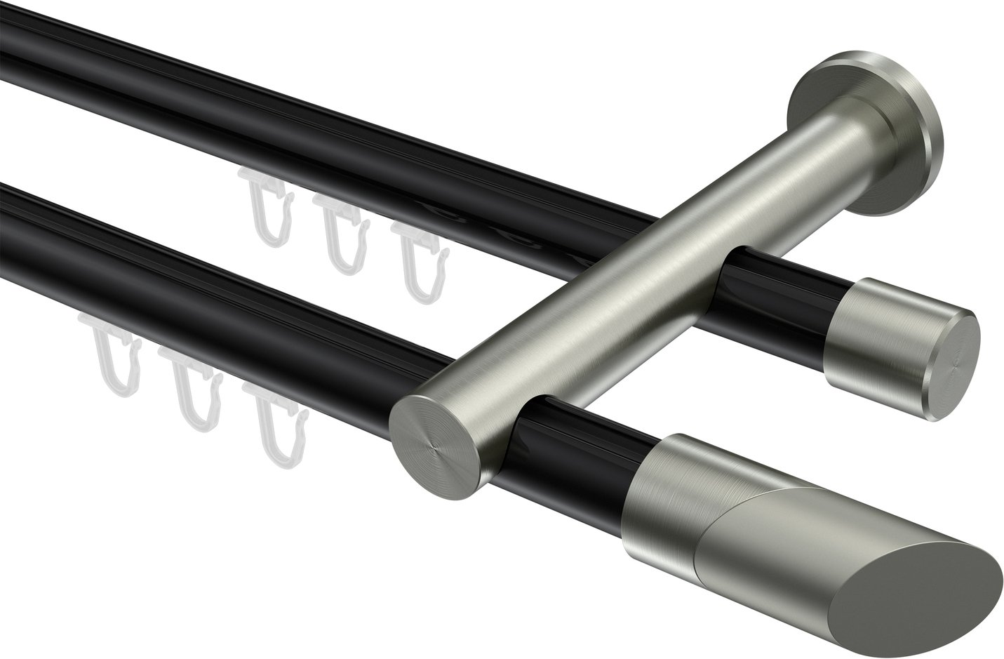 Gardinenstangen mit Innenlauf aus Aluminium / Metall in 20 mm Ø, 2-läufig, Modell PLATON - Verano Schwarz / Edelstahl-Optik