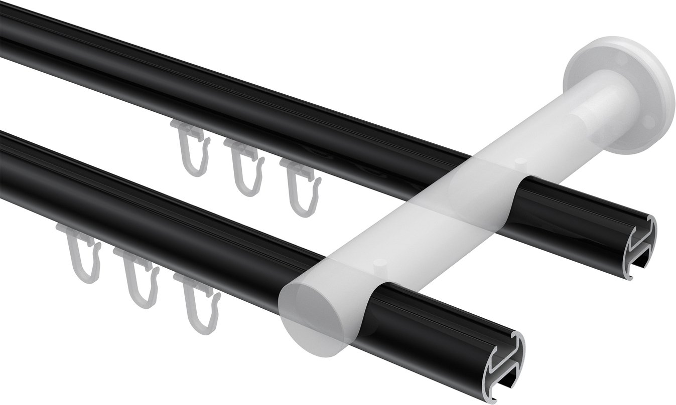 Informationen zu Innenlauf Gardinenstange Aluminium / Metall 20 mm Ø 2-läufig PLATON - Verano Schwarz / Edelstahl-Optik: