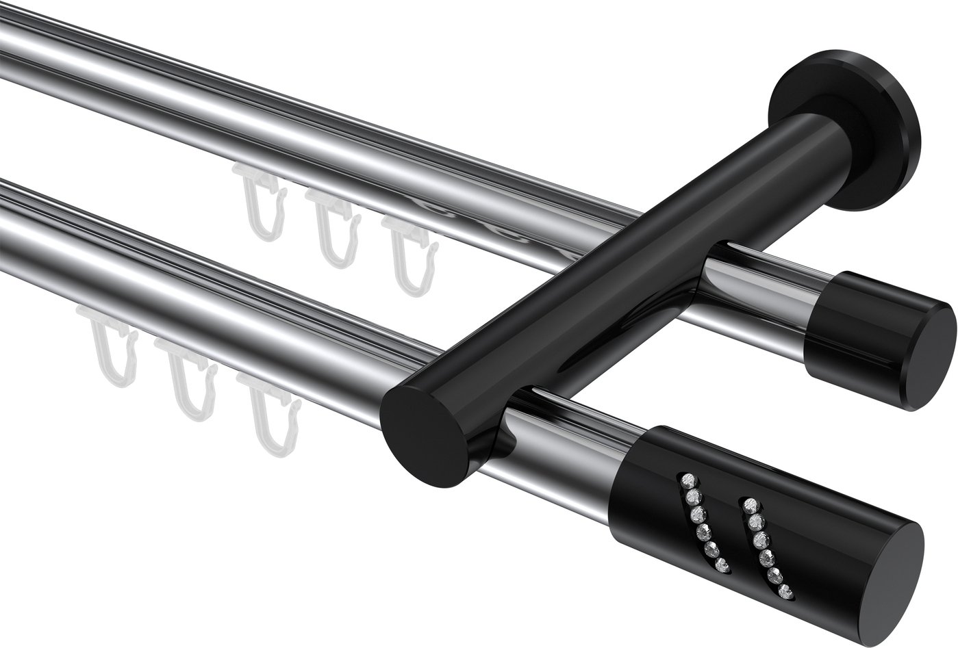 Informationen zu Innenlauf Gardinenstange Aluminium / Metall 20 mm Ø 2-läufig PLATON - Zoena Chrom / Schwarz: