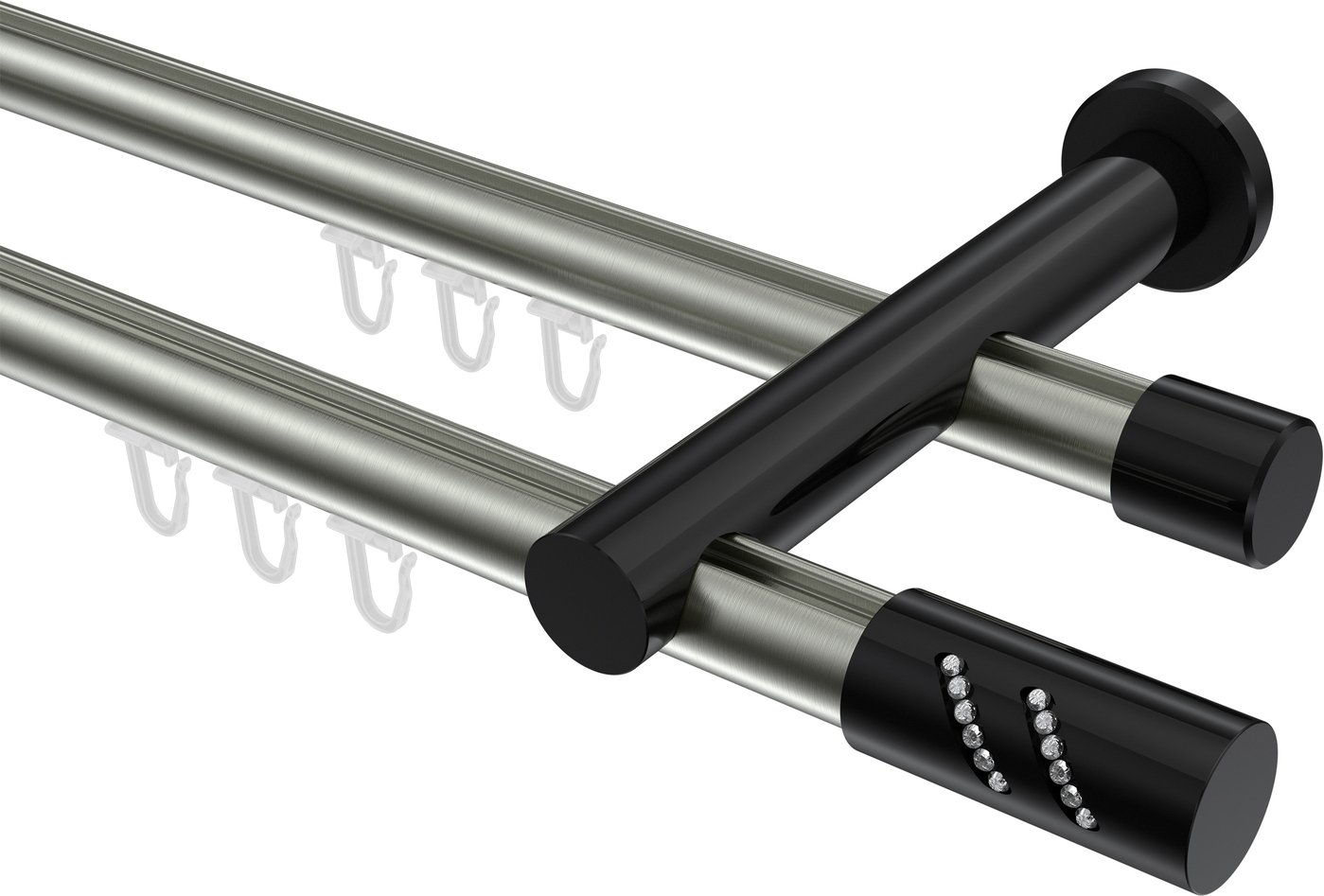 Informationen zu Innenlauf Gardinenstange Aluminium / Metall 20 mm Ø 2-läufig PLATON - Zoena Edelstahl-Optik / Schwarz: