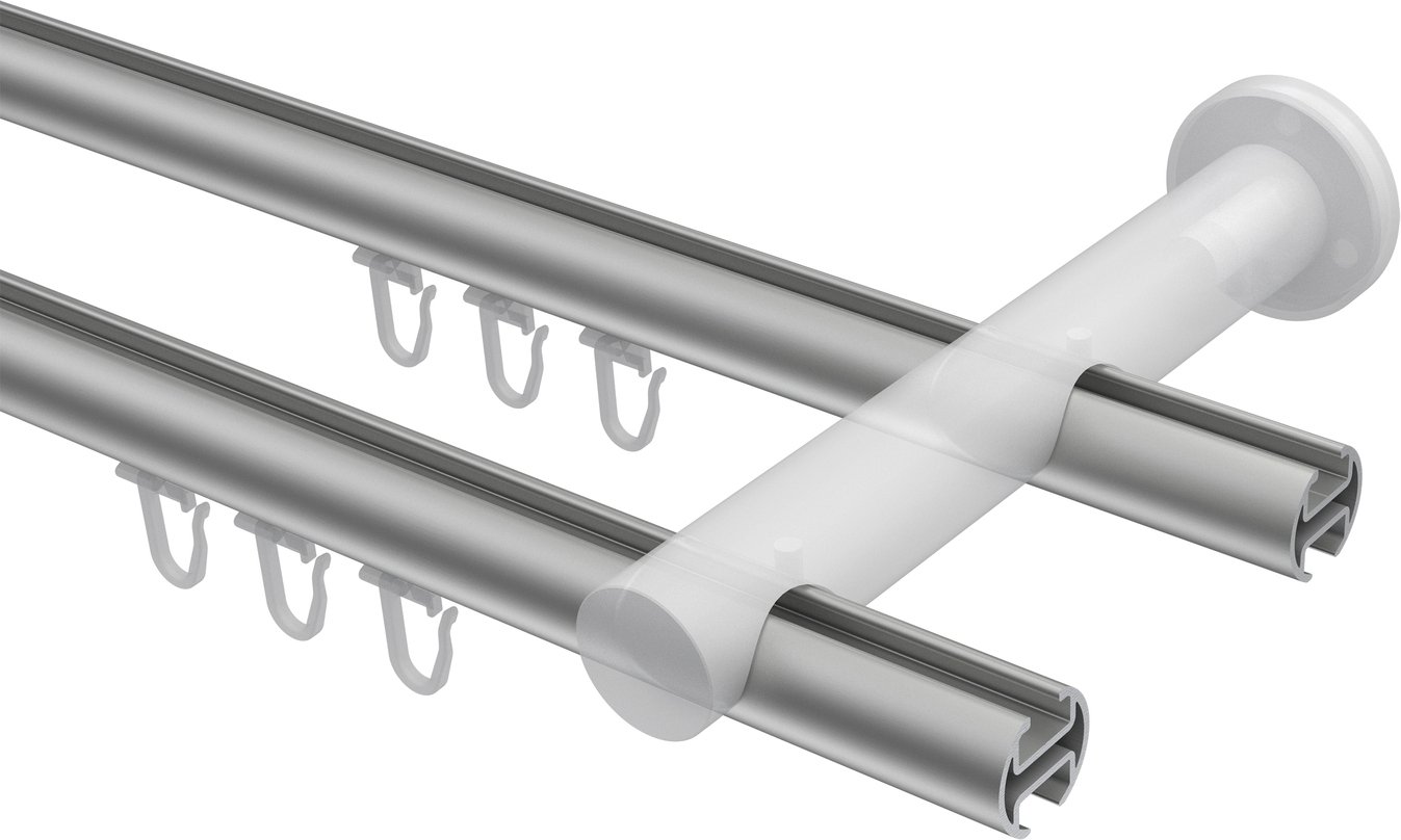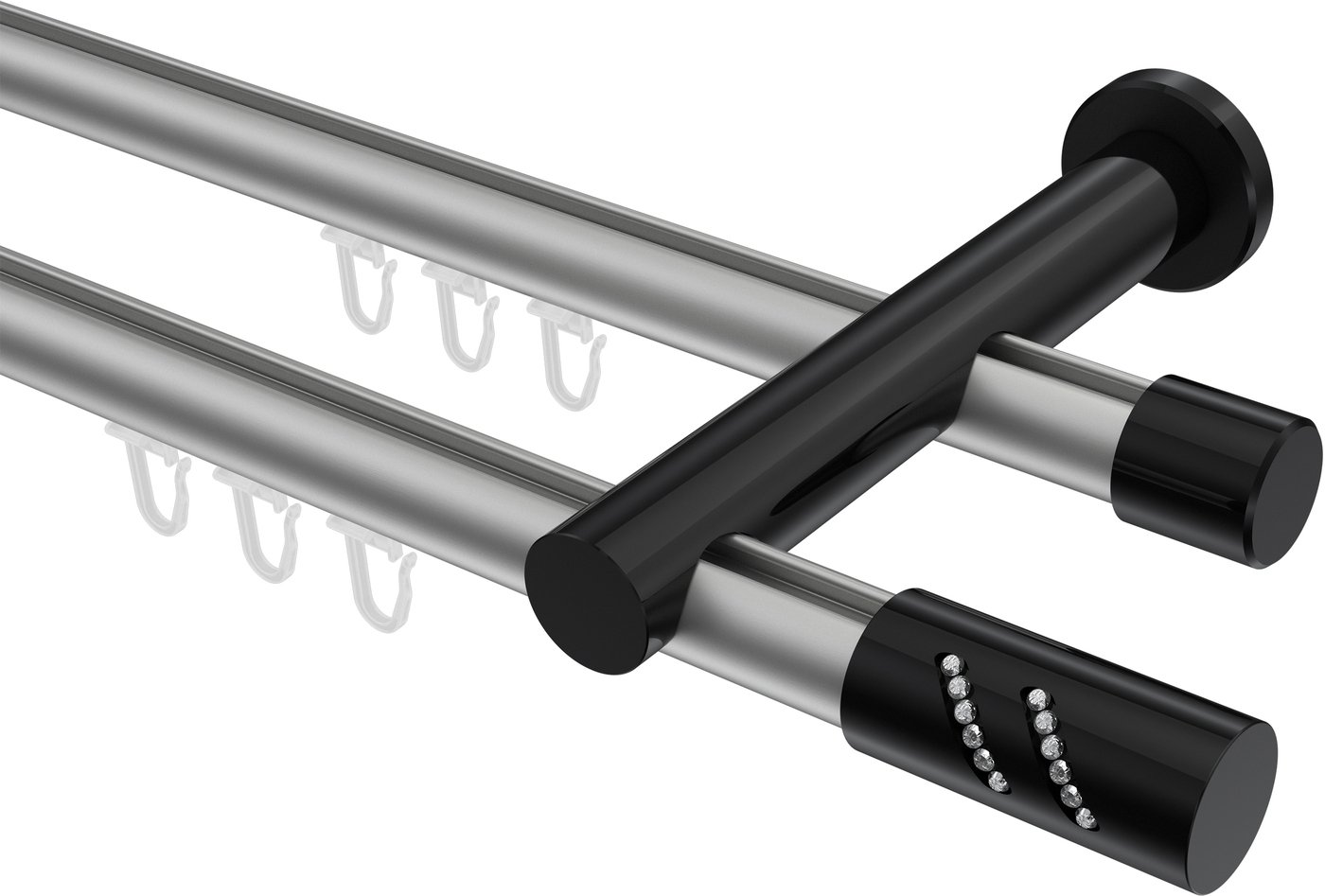 Informationen zu Innenlauf Gardinenstange Aluminium / Metall 20 mm Ø 2-läufig PLATON - Zoena Silbergrau / Schwarz: