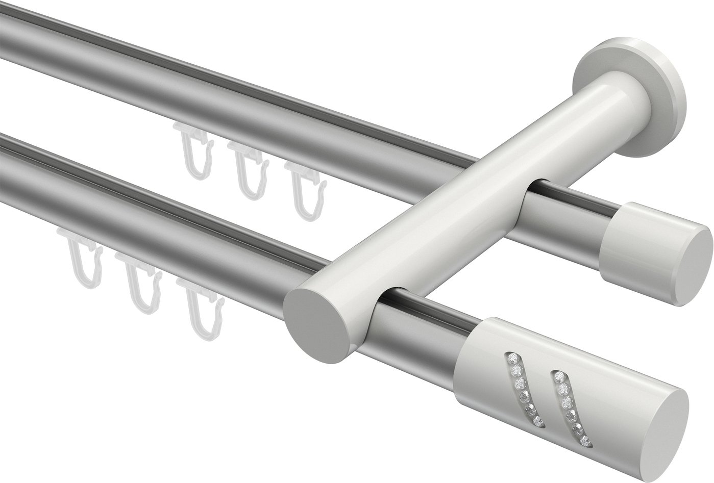Informationen zu Innenlauf Gardinenstange Aluminium / Metall 20 mm Ø 2-läufig PLATON - Zoena Silbergrau / Weiß: