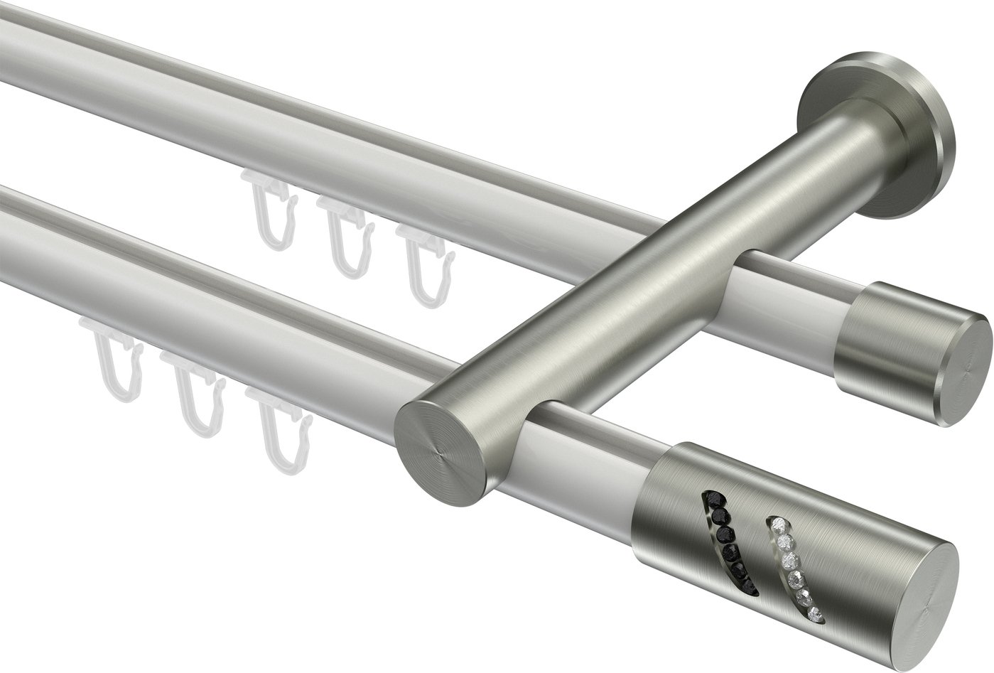 Informationen zu Innenlauf Gardinenstange Aluminium / Metall 20 mm Ø 2-läufig PLATON - Zoena Weiß / Edelstahl-Optik: