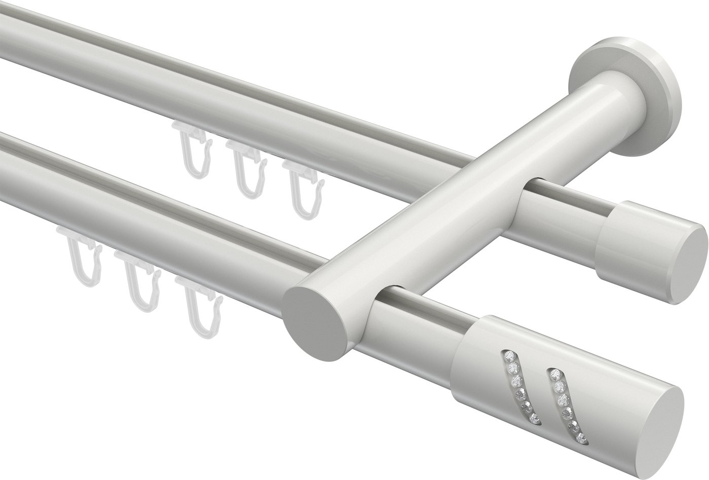 Gardinenstangen mit Innenlauf aus Aluminium / Metall in 20 mm Ø, 2-läufig, Modell PLATON - Zoena Weiß