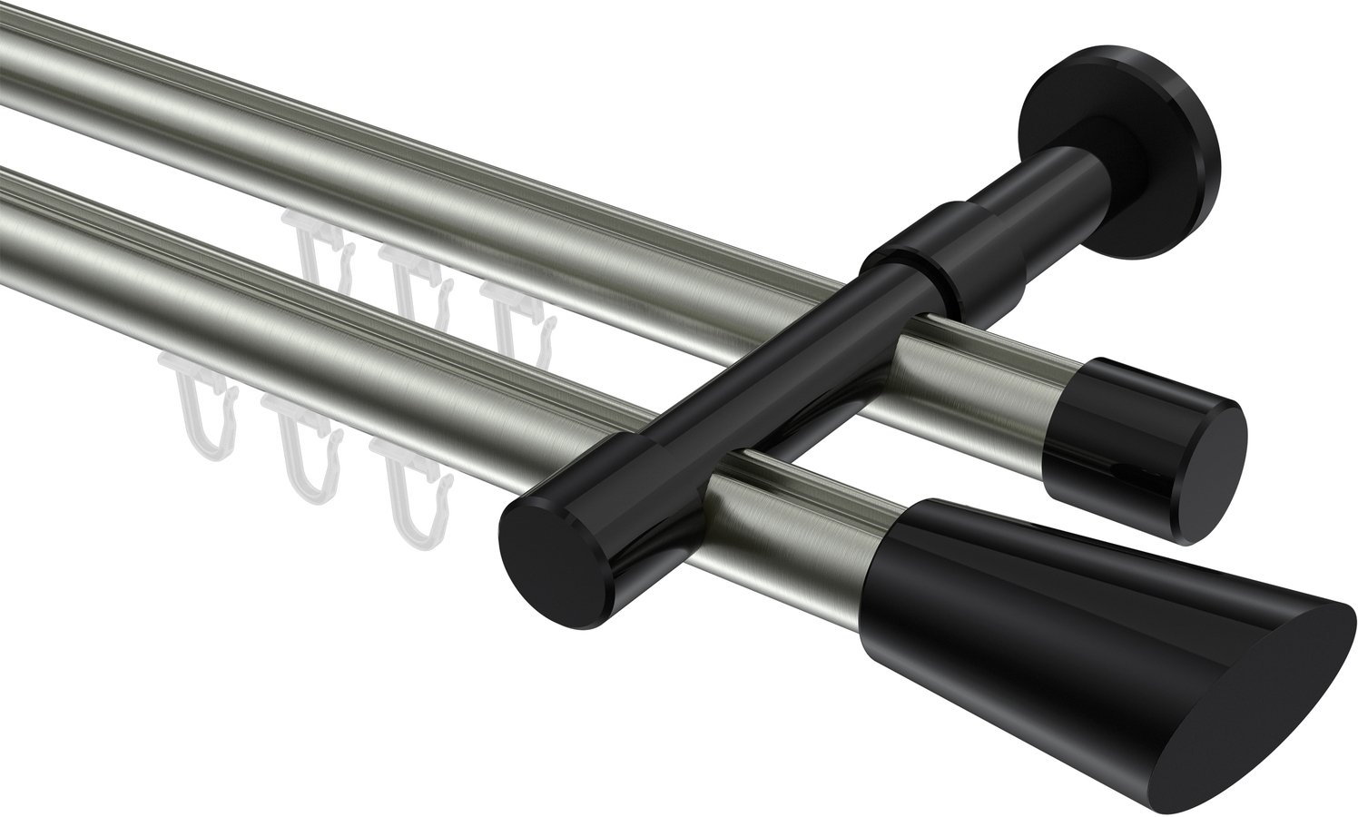 Informationen zu Innenlauf Gardinenstange Aluminium / Metall 20 mm Ø 2-läufig PRESTIGE - Bento Edelstahl-Optik / Schwarz: