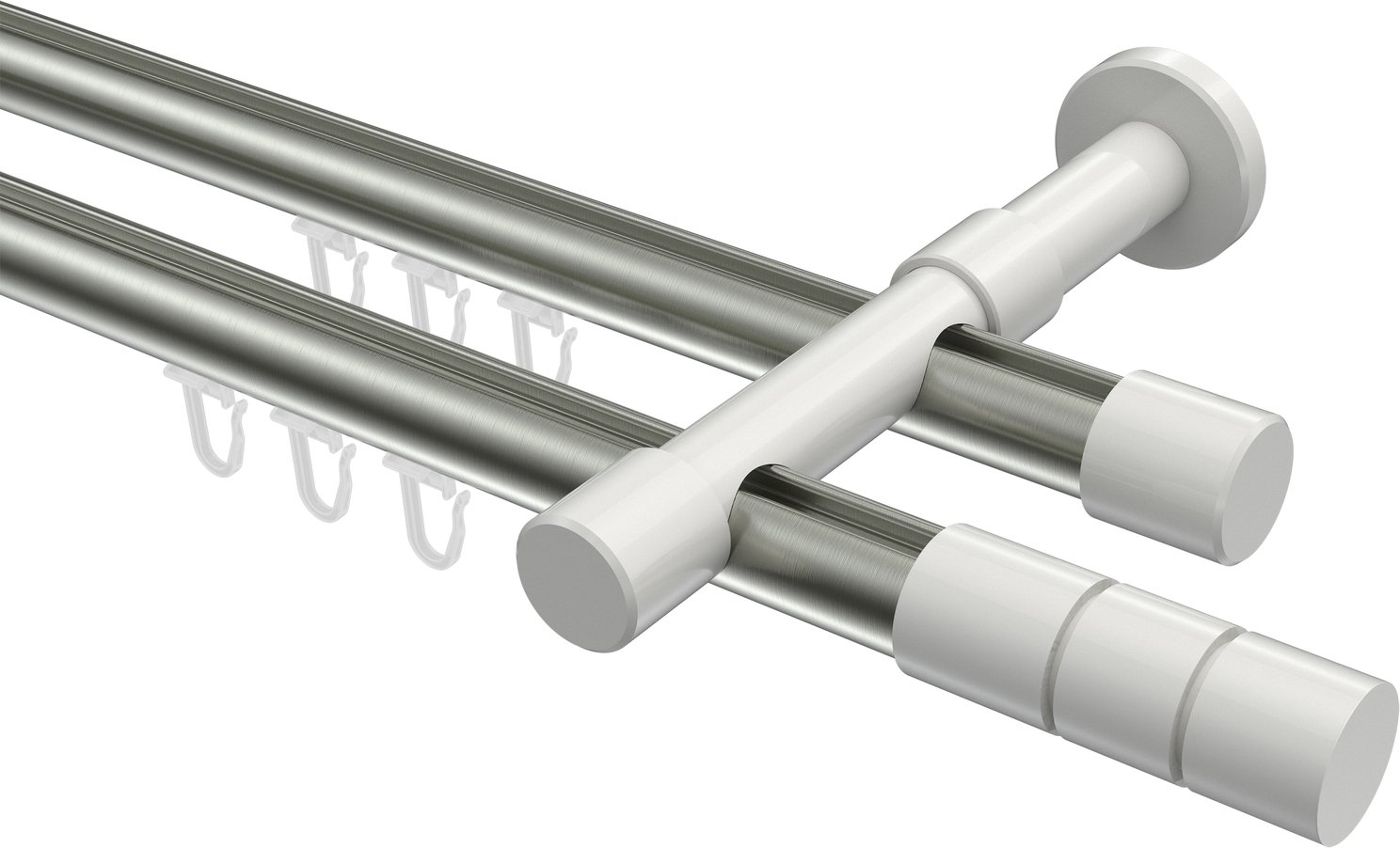 Informationen zu Innenlauf Gardinenstange Aluminium / Metall 20 mm Ø 2-läufig PRESTIGE - Elanto Edelstahl-Optik / Weiß: