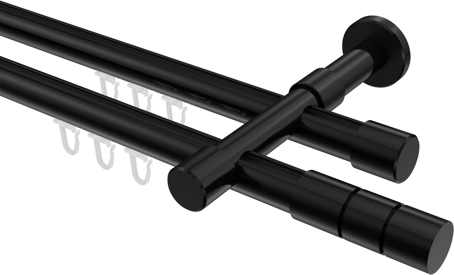 Gardinenstangen mit Innenlauf aus Aluminium / Metall in 20 mm Ø, 2-läufig, Modell PRESTIGE - Elanto Schwarz