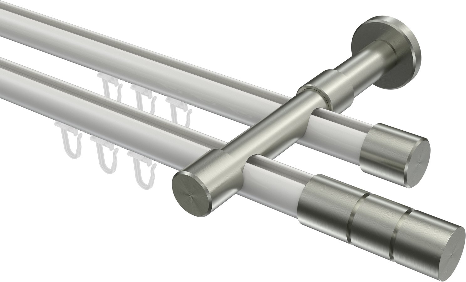 Informationen zu Innenlauf Gardinenstange Aluminium / Metall 20 mm Ø 2-läufig PRESTIGE - Elanto Weiß / Edelstahl-Optik: