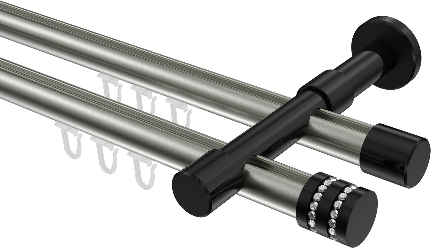 Gardinenstangen mit Innenlauf aus Aluminium / Metall in 20 mm Ø, 2-läufig, Modell PRESTIGE - Estana Edelstahl-Optik / Schwarz