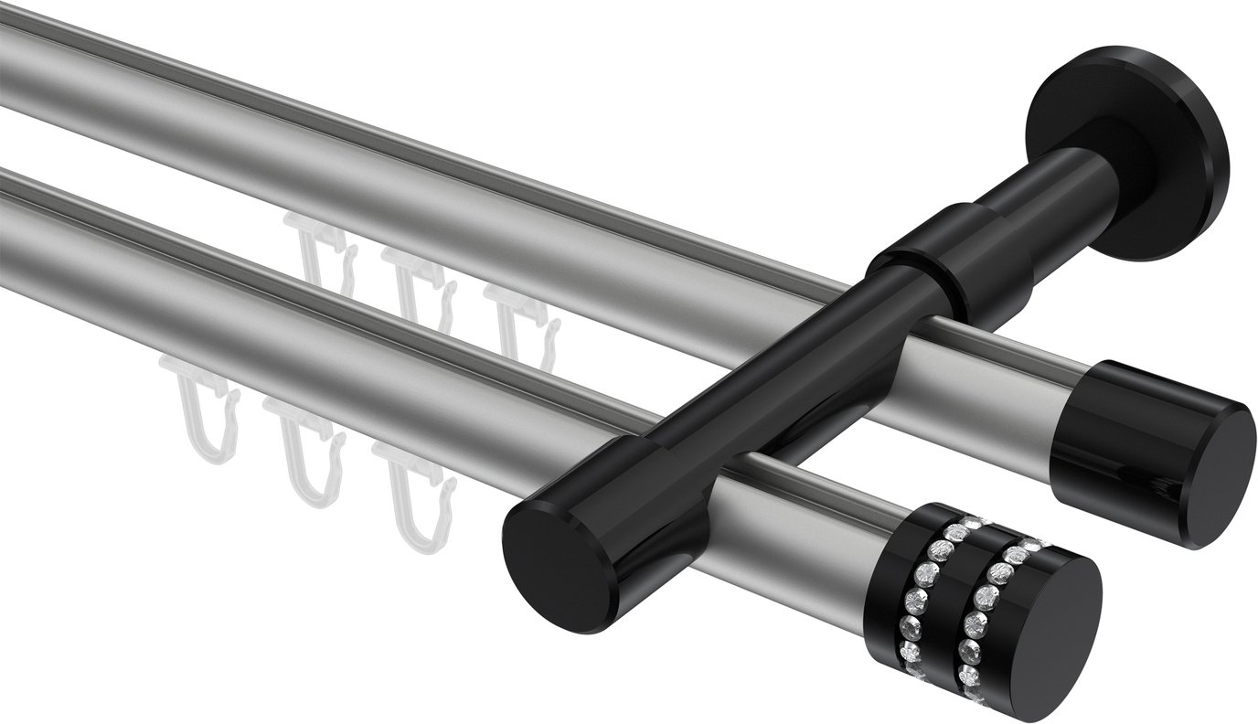 Gardinenstangen mit Innenlauf aus Aluminium / Metall in 20 mm Ø, 2-läufig, Modell PRESTIGE - Estana Silbergrau / Schwarz