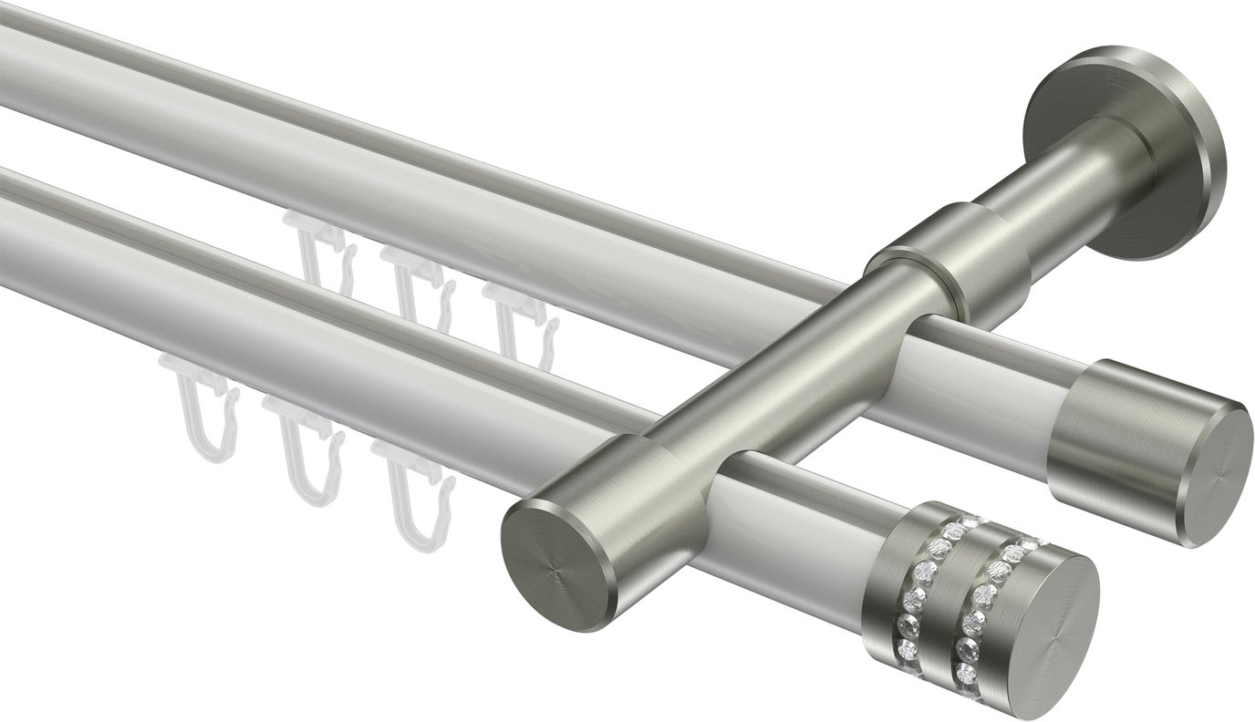 Informationen zu Innenlauf Gardinenstange Aluminium / Metall 20 mm Ø 2-läufig PRESTIGE - Estana Weiß / Edelstahl-Optik: