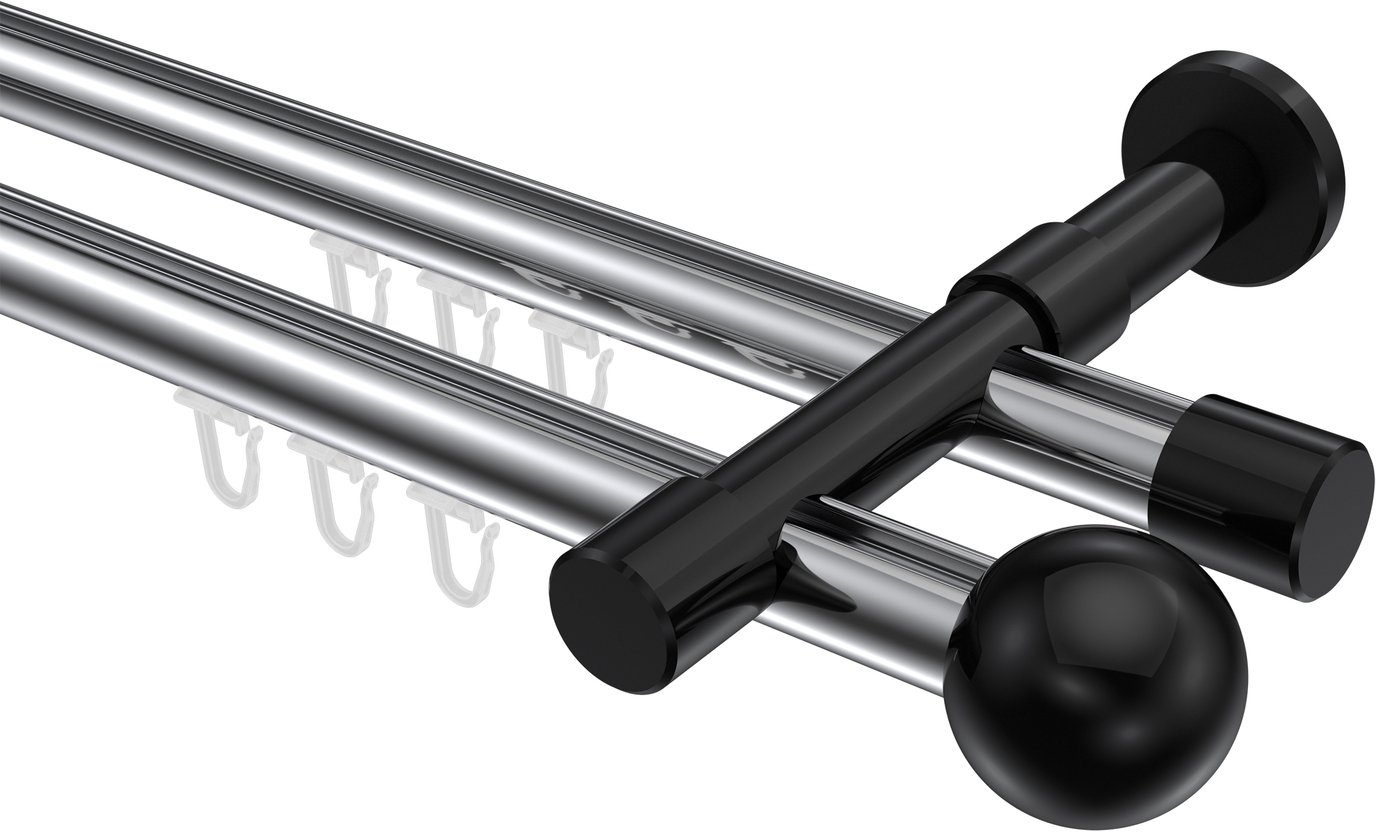Informationen zu Innenlauf Gardinenstange Aluminium / Metall 20 mm Ø 2-läufig PRESTIGE - Luino Chrom / Schwarz: