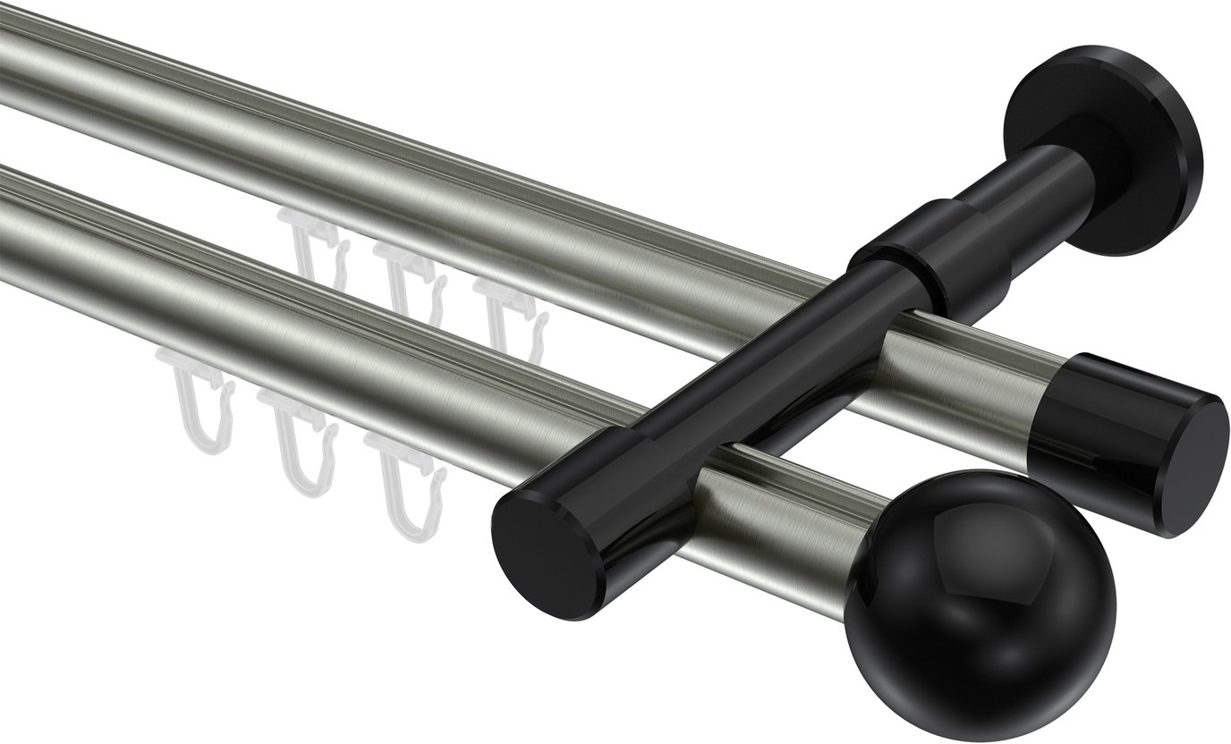 Gardinenstangen mit Innenlauf aus Aluminium / Metall in 20 mm Ø, 2-läufig, Modell PRESTIGE - Luino Edelstahl-Optik / Schwarz