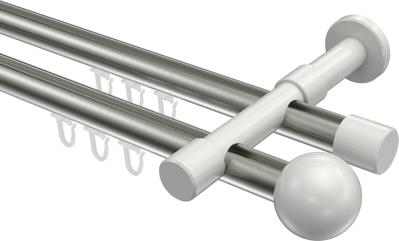 Gardinenstangen mit Innenlauf aus Aluminium / Metall in 20 mm Ø, 2-läufig, Modell PRESTIGE - Luino Edelstahl-Optik / Weiß