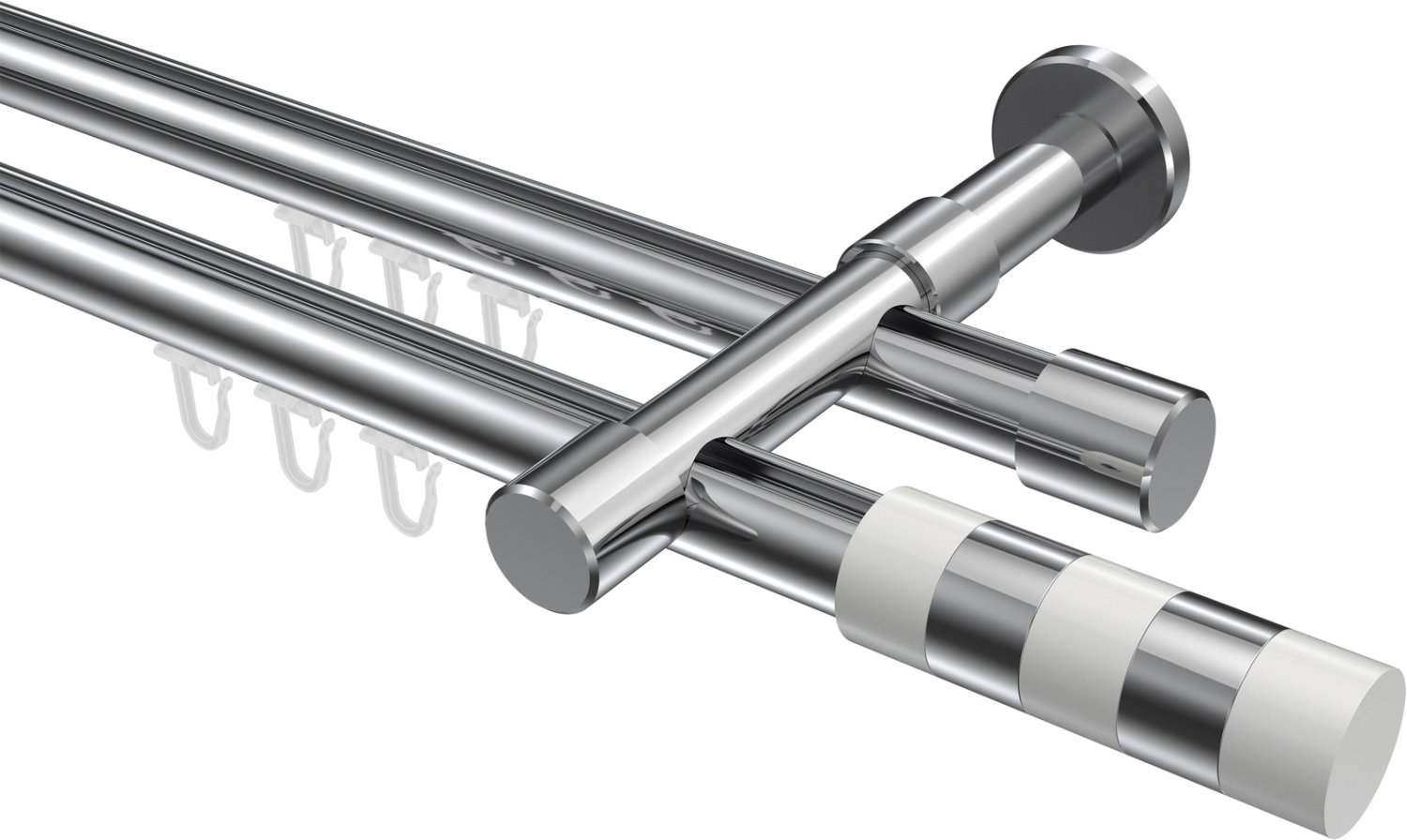 Gardinenstangen mit Innenlauf aus Aluminium / Metall in 20 mm Ø, 2-läufig, Modell PRESTIGE - Mavell Chrom