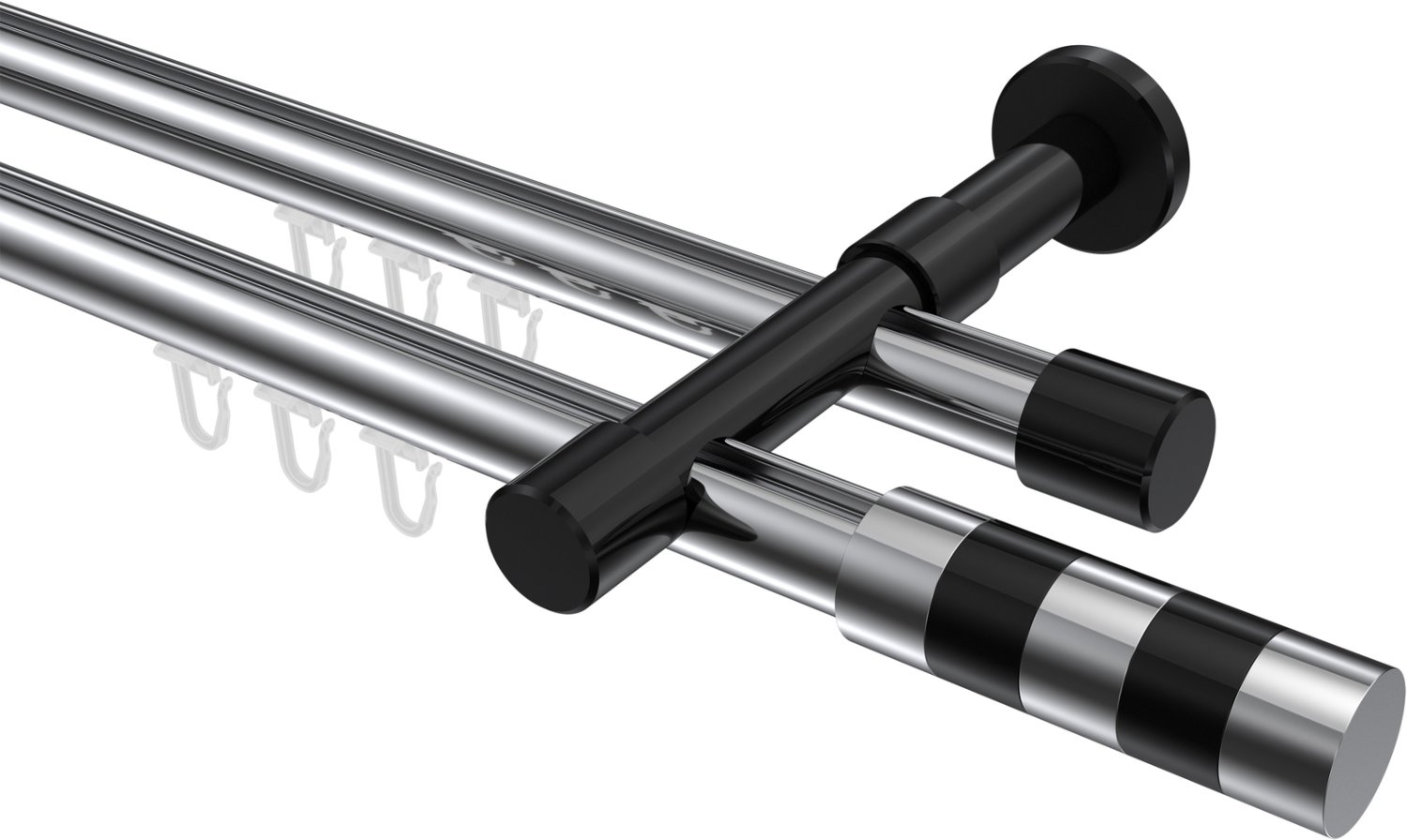 Informationen zu Innenlauf Gardinenstange Aluminium / Metall 20 mm Ø 2-läufig PRESTIGE - Mavell Chrom / Schwarz: